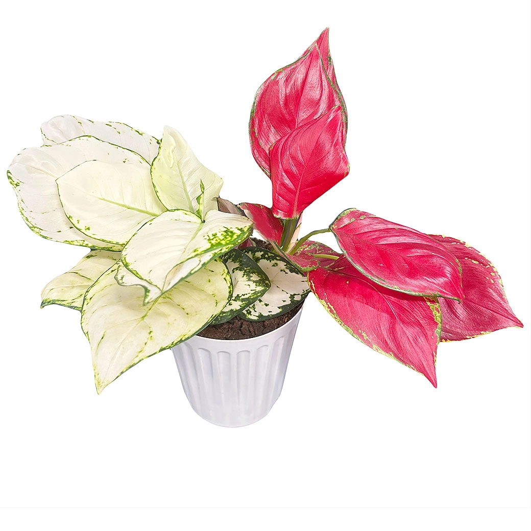 Аглаонема ақ және қызыл «бөлме өсімдіктері → декоративті жапырақты өсімдіктер» санатына жатады және 25-35 см өлшемдерде, жасыл негізі бар ақ және қызыл тамыршелі пестр жапырақтармен жеткізіледі. Компактты пішіні мен түстер әртүрлілігі жалғыз отырғызулар мен құмыралардағы микстер үшін әмбебап етеді.