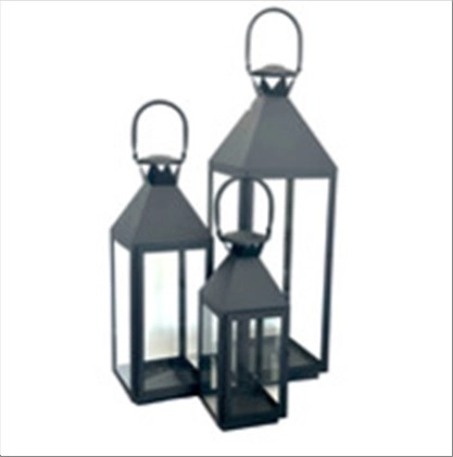 Фонарь (металл, стекло), 22x23xН73,5 см - 13x13xН39,5 см, набор (3 шт) Черный