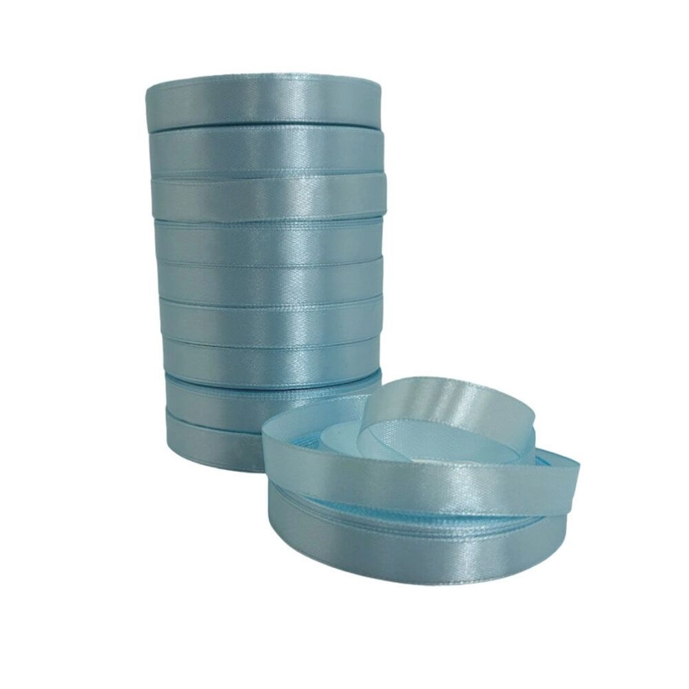 Лента атлас, 12 ммx25 ярд, набор (10 шт) Бирюзовый-голубой