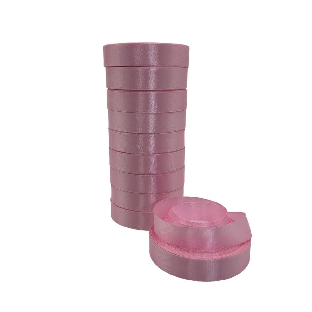 Лента атлас, 20 ммx25 ярд, набор (10 шт) Персиковый-розовый