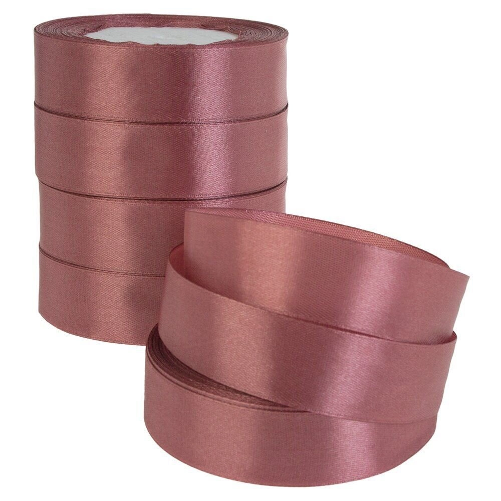 Лента атлас, 25 ммx25 ярд Коричневый-розовый