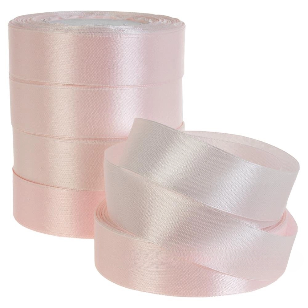Лента атлас, 25 ммx25 ярд, набор (5 шт) Белый-розовый