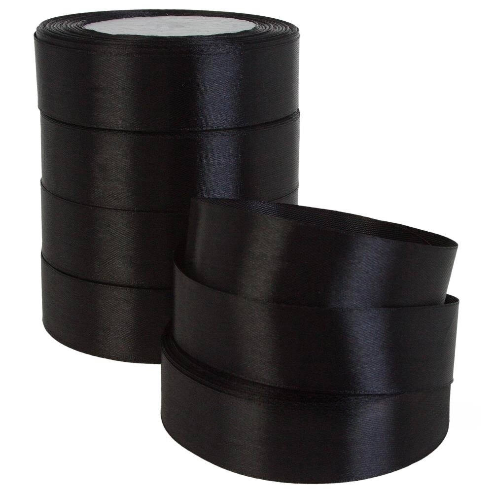 Лента атлас, 25 ммx25 ярд, набор (5 шт) Черный