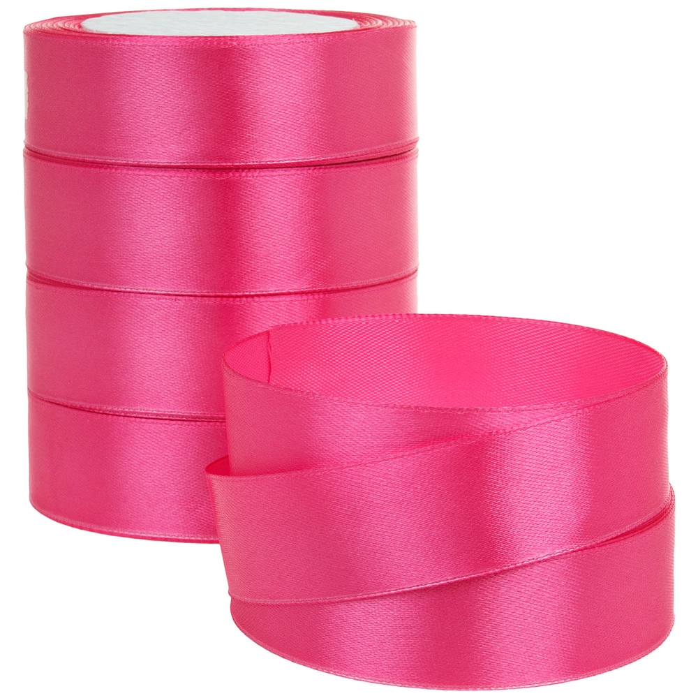 Лента атлас, 25 ммx25 ярд, набор (5 шт) Фуксия