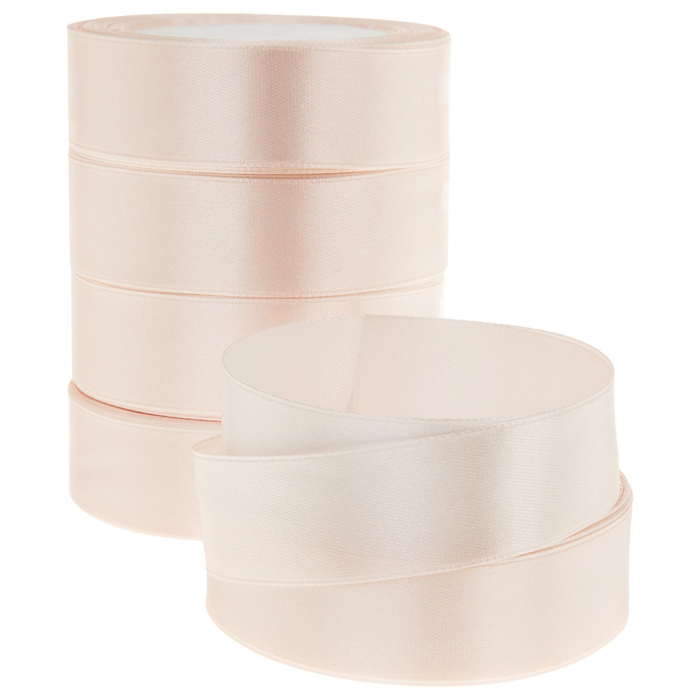 Лента атлас, 25 ммx25 ярд, набор (5 шт) Кремовый-розовый