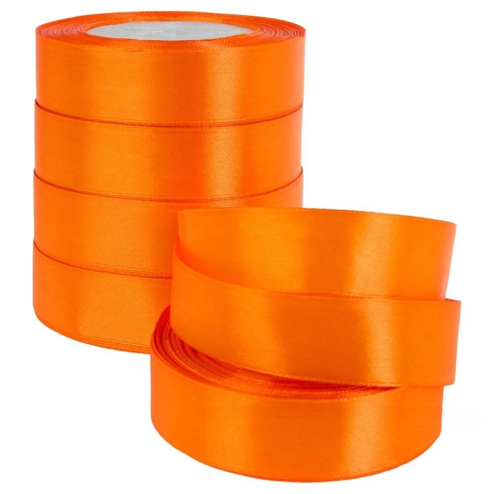 Лента атлас, 25 ммx25 ярд, набор (5 шт) Оранжевый