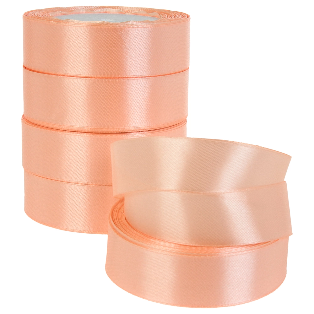 Лента атлас, 25 ммx25 ярд, набор (5 шт) Персиковый