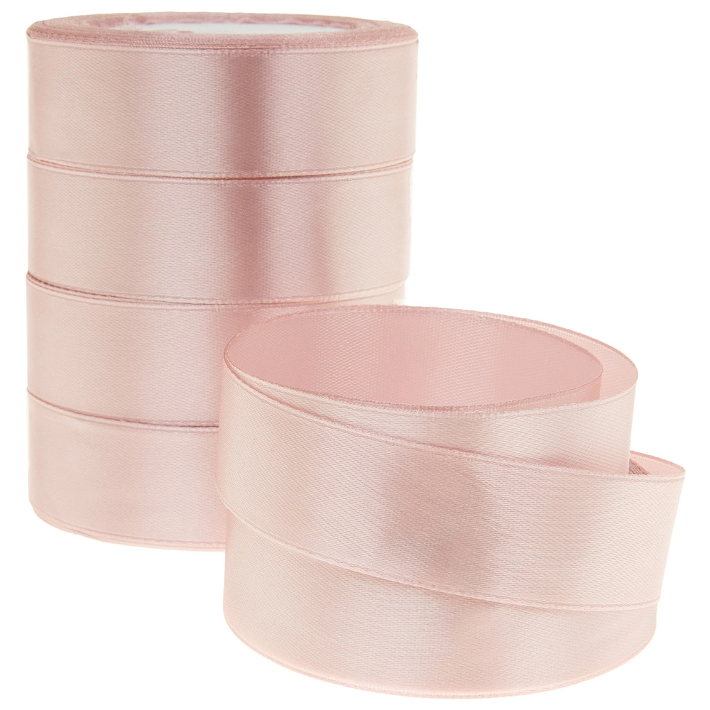 Лента атлас, 25 ммx25 ярд, набор (5 шт) Пудровый-розовый