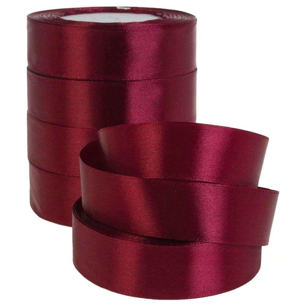 Лента атлас, 25 ммx25 ярд, набор (5 шт) Розовый-сливовый