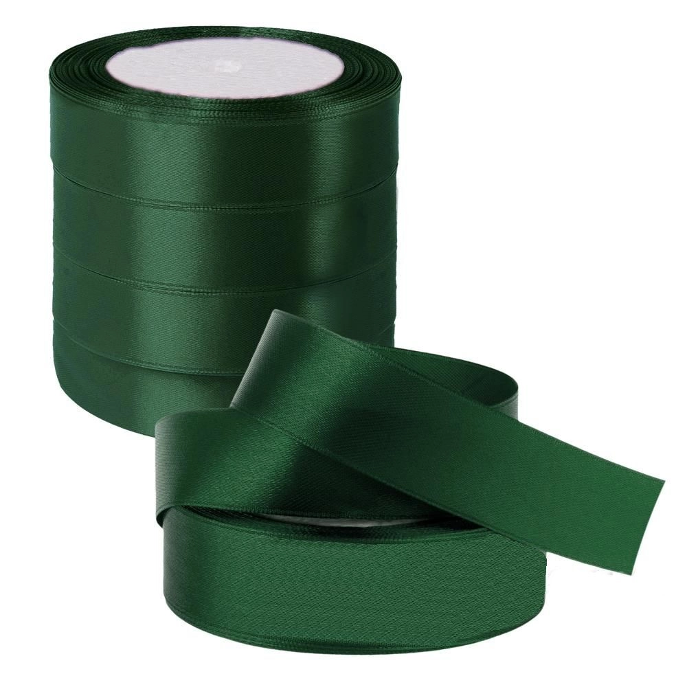 Лента атлас, 25 ммx25 ярд, набор (5 шт) Темно-зеленый