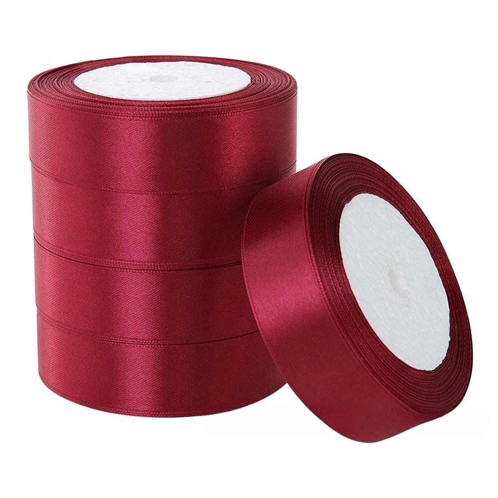 Лента атлас, 25 ммx25 ярд, набор (5 шт) Ягодный