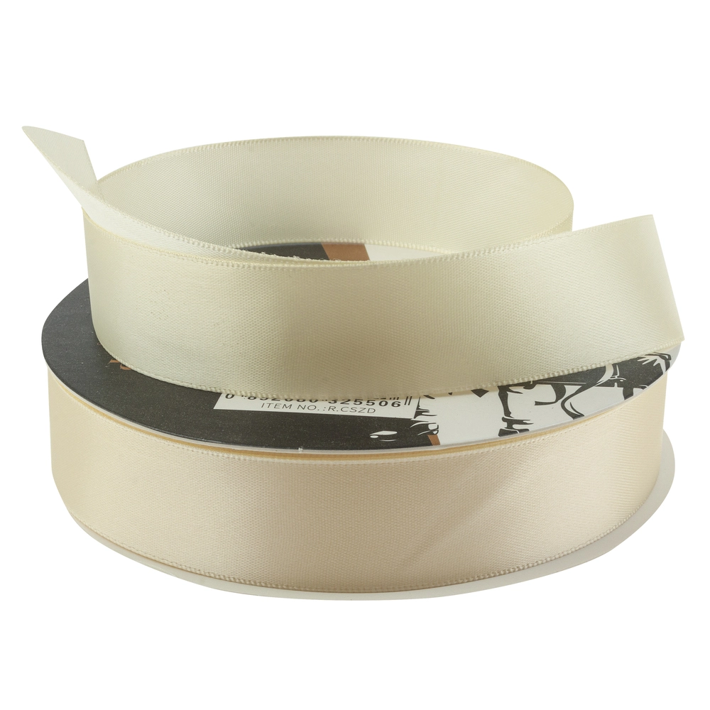 Лента атлас, 25 ммx35 ярд, плотная, на катушке Молочный