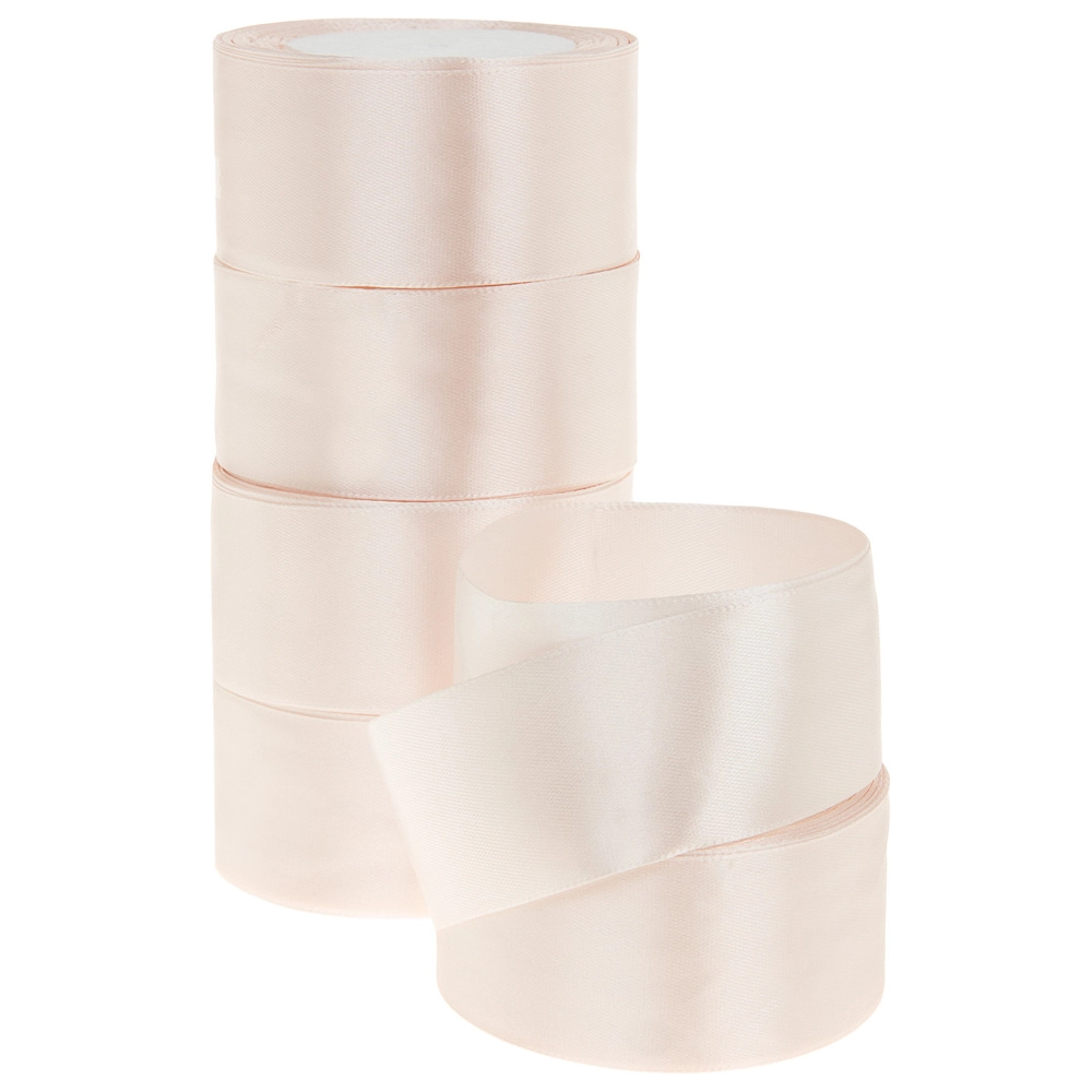 Лента атлас, 40 ммx25 ярд, набор (5 шт) Кремовый-розовый