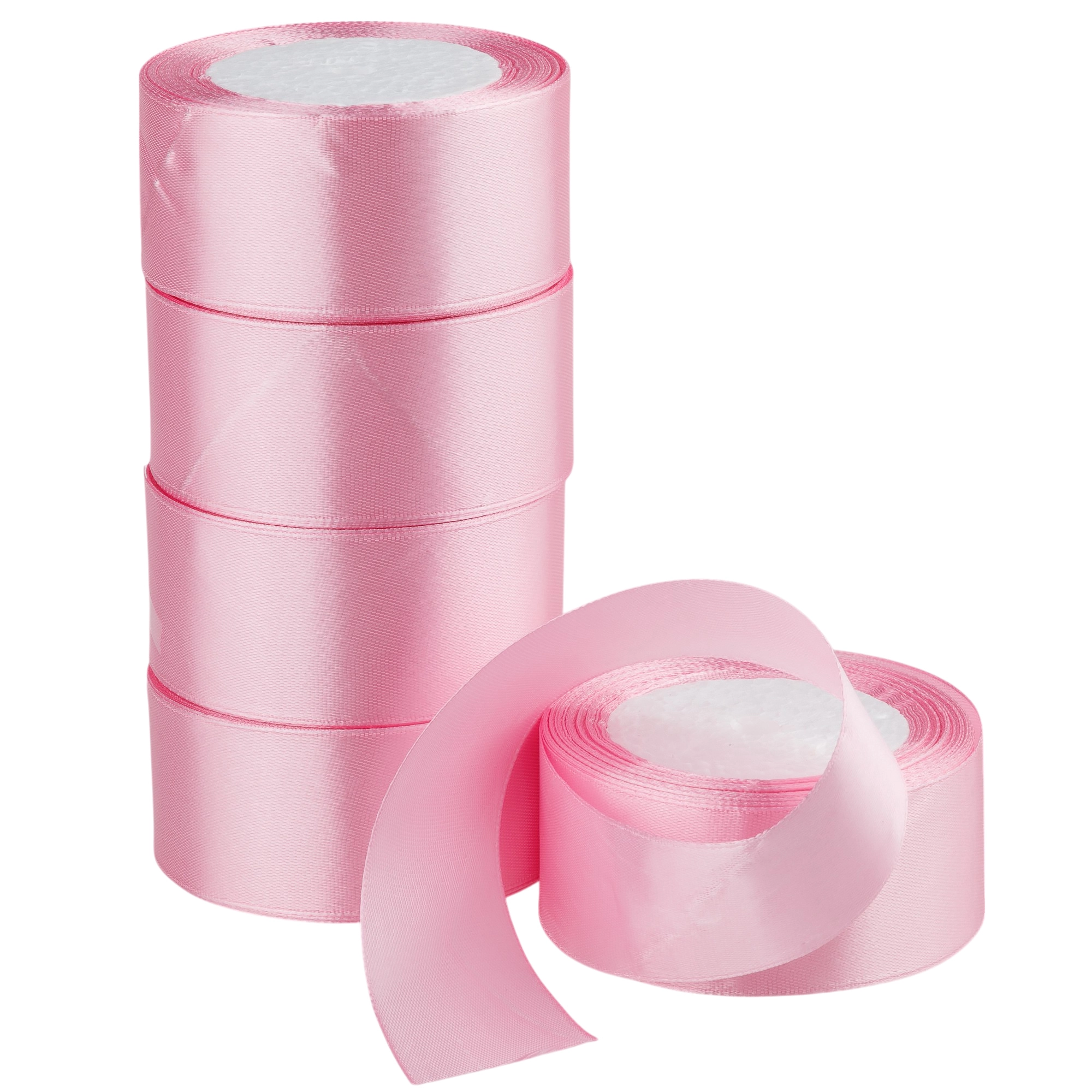 Лента атлас, 40 ммx25 ярд, набор (5 шт) Розовый-сиреневый