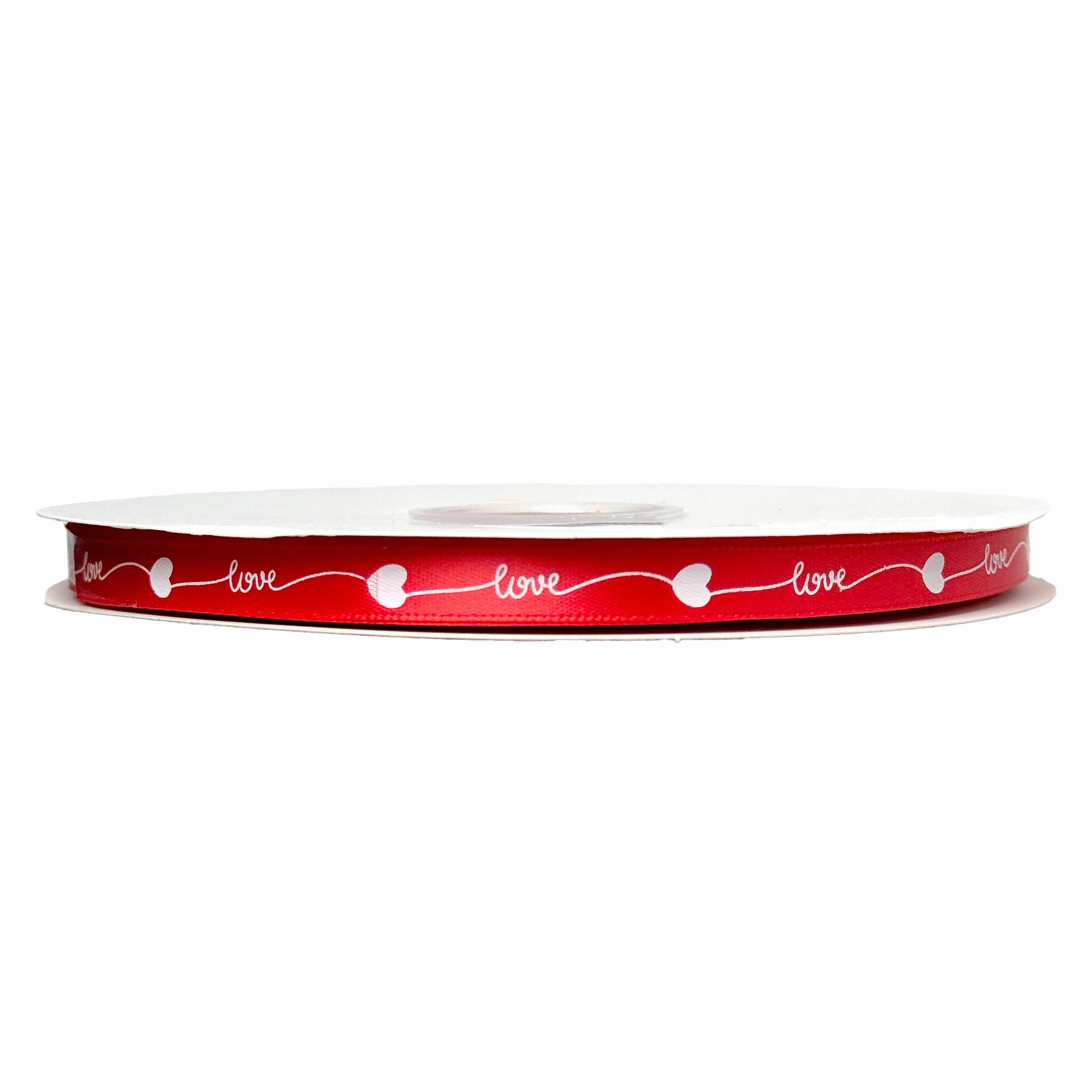 Лента атлас " Love", 10 ммx100 ярд Красный