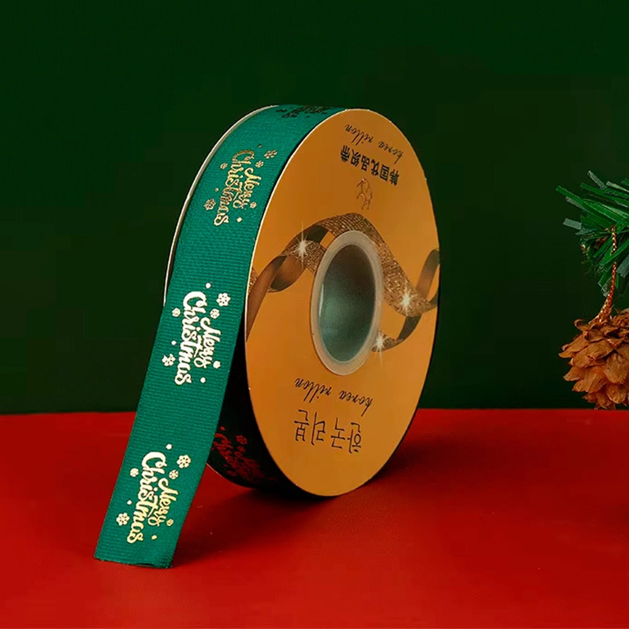 Лента декоративная "Репсовая С новым годом", 25 ммx100 ярд Зеленый