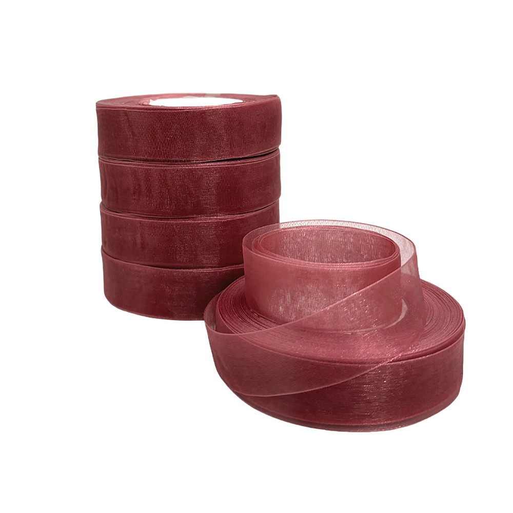 Лента органза, 25 ммx50 ярд, набор (5 шт) Пыльно-розовый