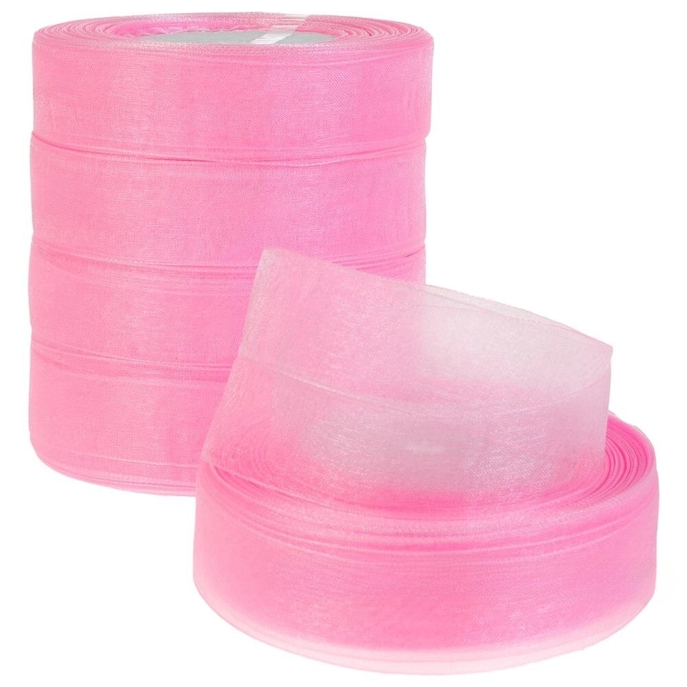 Лента органза, 25 ммx50 ярд, набор (5 шт) Розовый
