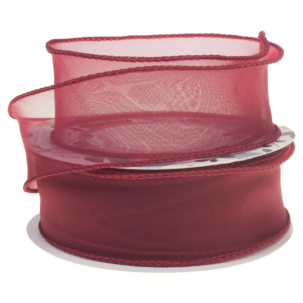 Лента органза, 40 ммx10 ярд, на леске Красный