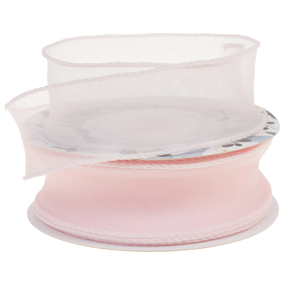 Лента органза, 40 ммx10 ярд, на леске Светло-розовый