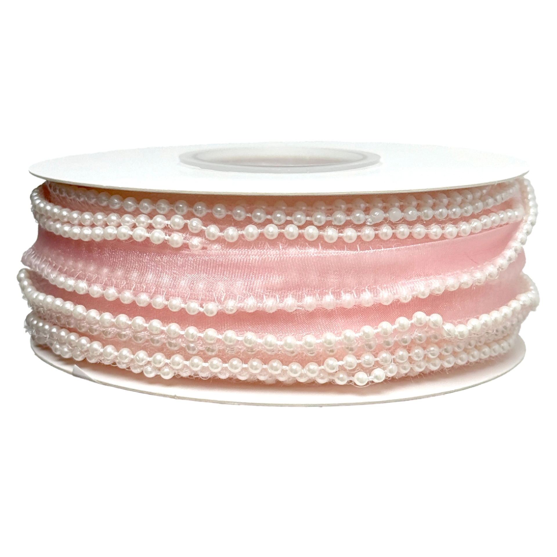 Лента органза "Жемчуг", 40 ммx5 ярд Розовый