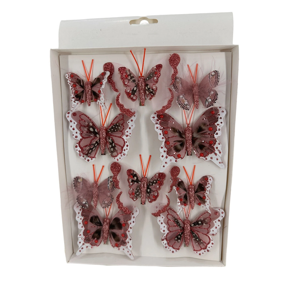 Бабочка на клипе (перо), H5-8 см, набор (10 шт), в асс. В ассортименте