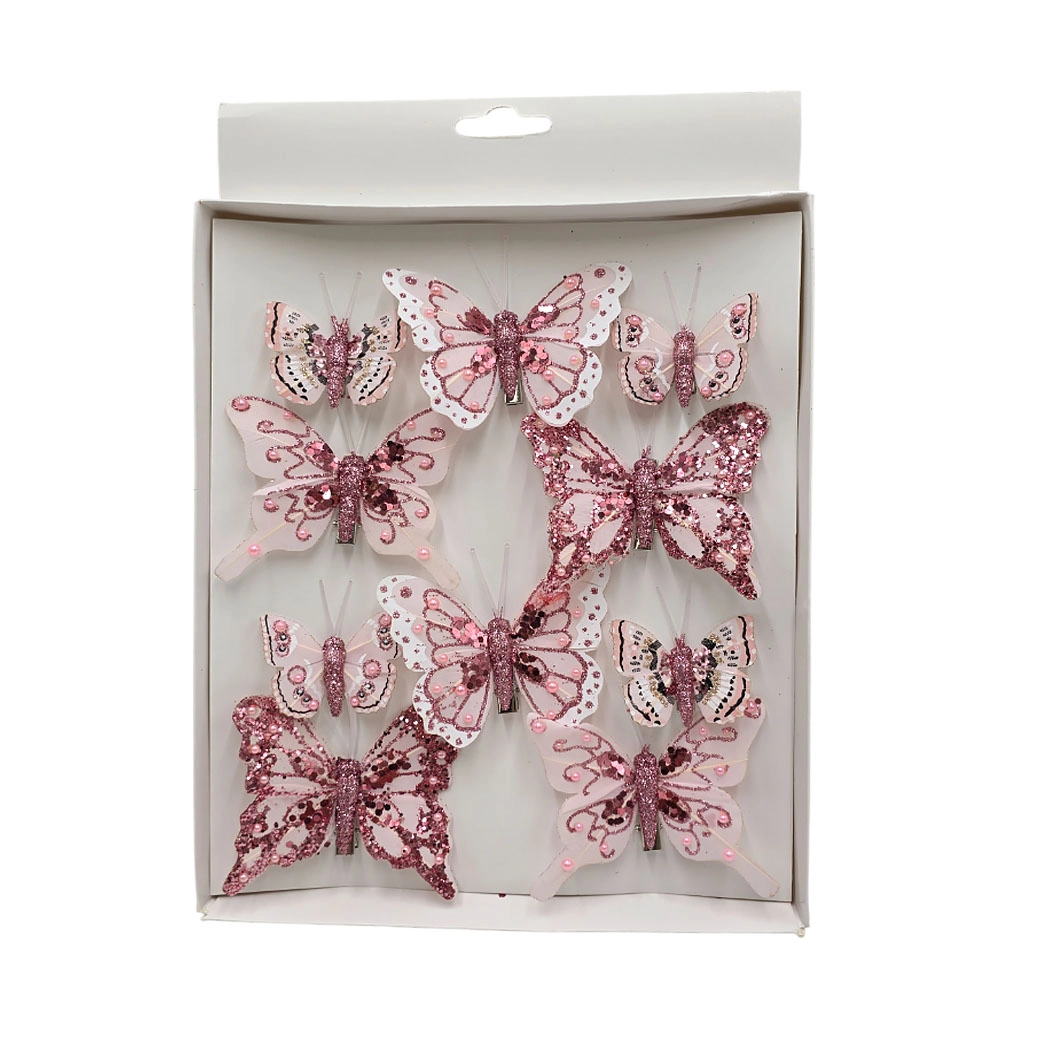 Бабочка на клипе (перо), H5-8 см, набор (10 шт), в асс. Розовый