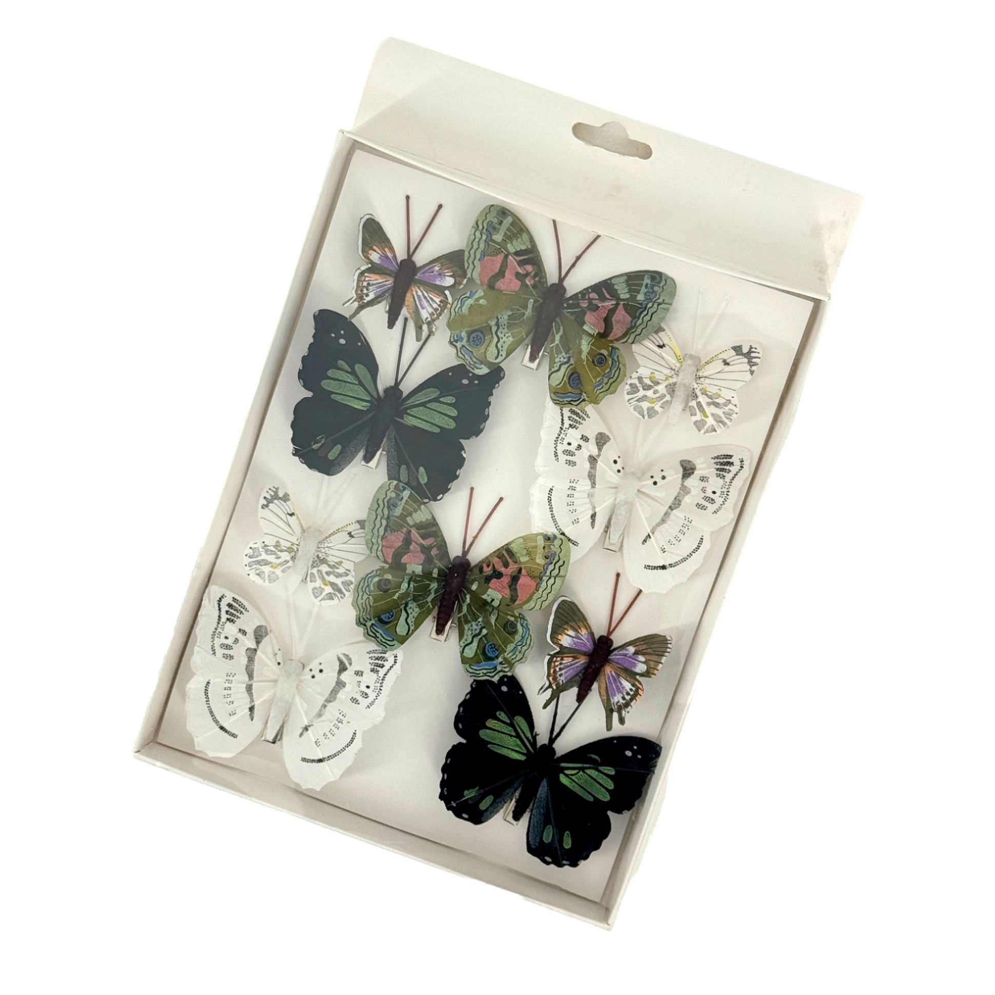Бабочка на клипе (перо), H5-8 см, набор (10 шт) В ассортименте