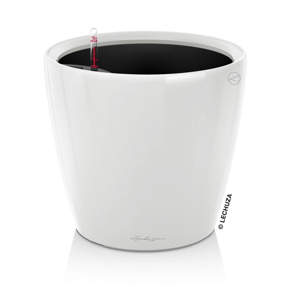 Кашпо Lechuza "Classico LS Complete (white high glossgloss)" (пластик), D28xH26 см Белый блестящий