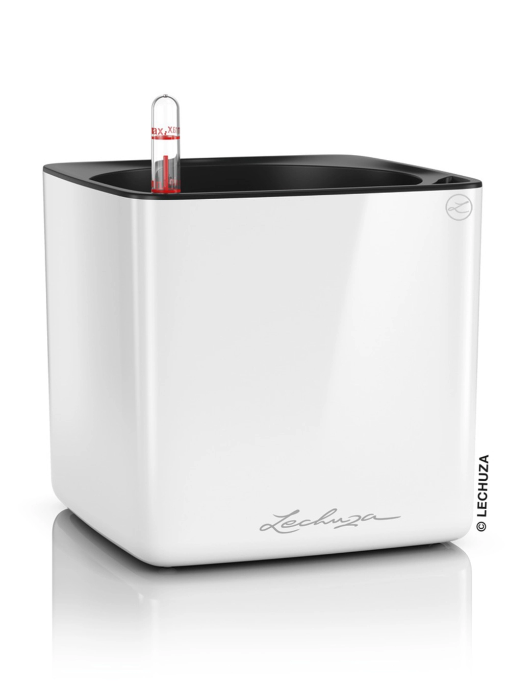 Кашпо Lechuza "Cube Glossy Complete white high gloss" (пластик), 14x14xH14 см Белый блестящий