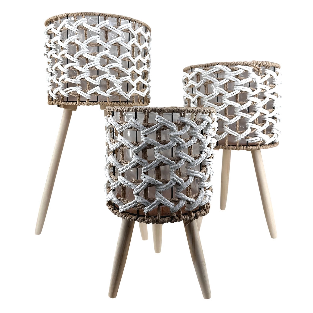 Кашпо плетеное (трава), D25xH22,5/59 см - D20,5xH19/34 см, набор (3 шт), на ножках Белый