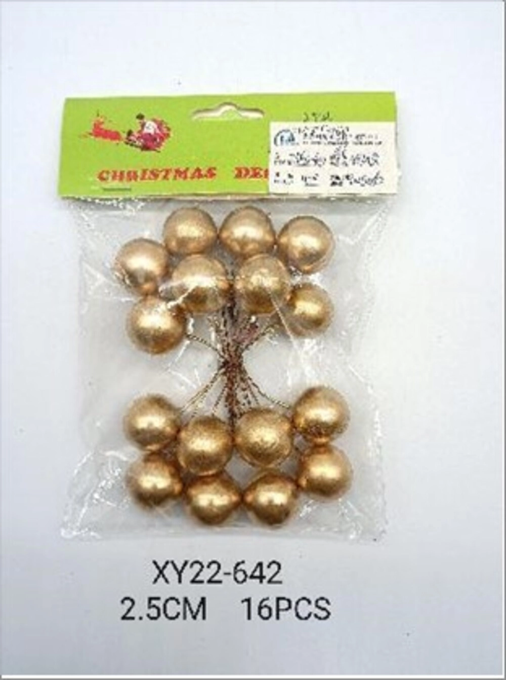 Шар на вставке (пластик), D2,5 см, набор (24 шт) Золотой