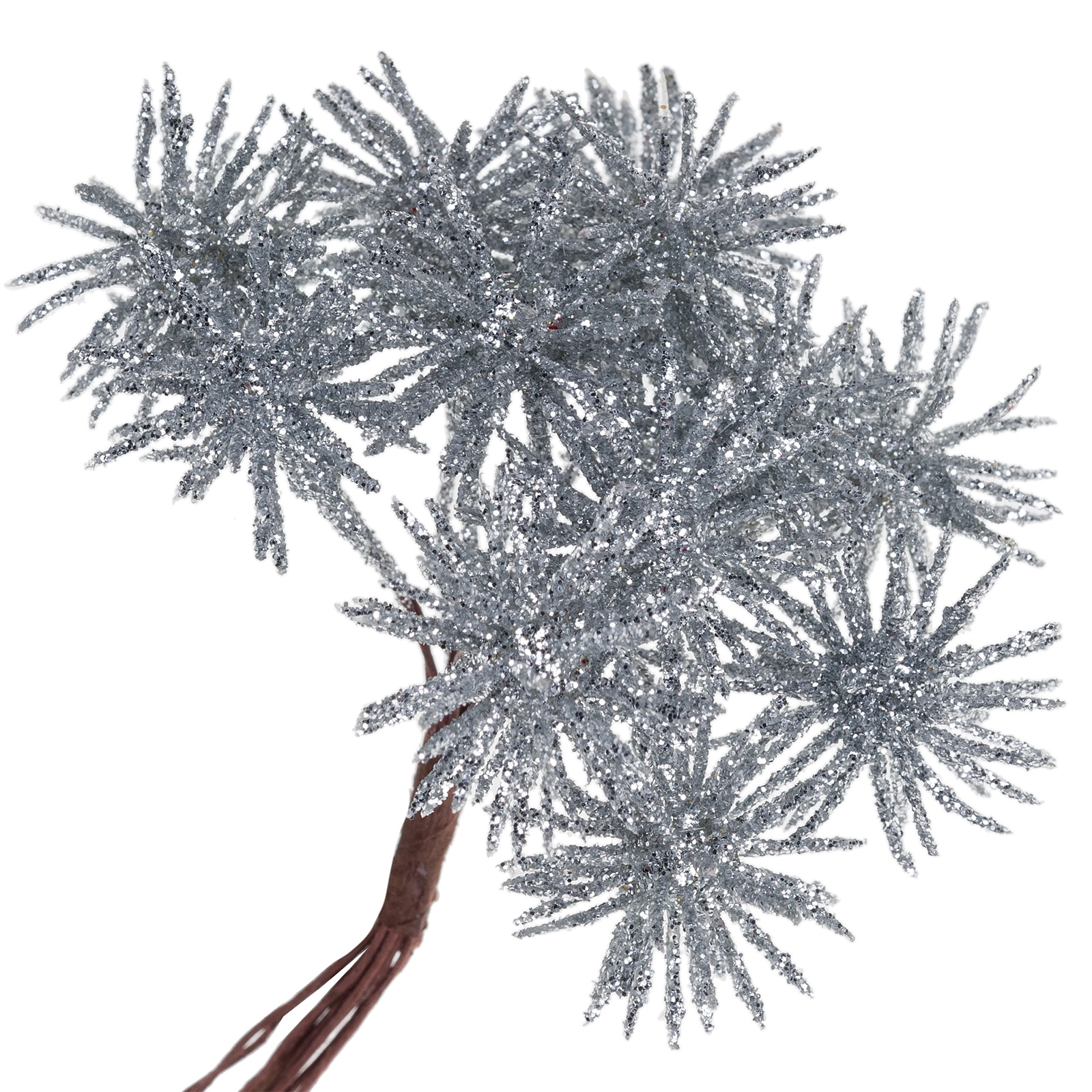Снежинка искусственная на вставке (пластик), набор (10 шт), с глиттером Серебряный
