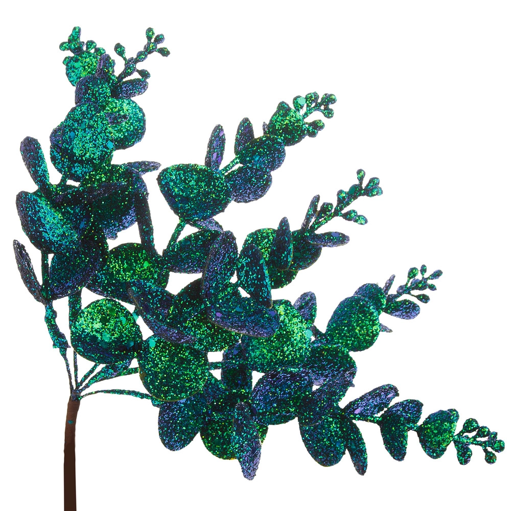 Ветка искусственная на вставке "Эвкалипт" (пластик), H20 см, с глиттером Зеленый