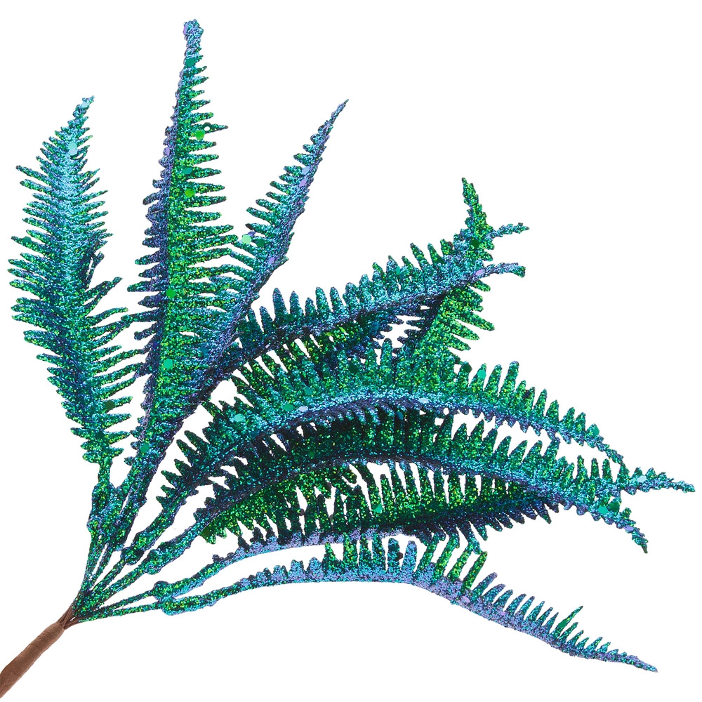 Ветка искусственная на вставке "Папоротник" (пластик), H22 см, с глиттером Зеленый