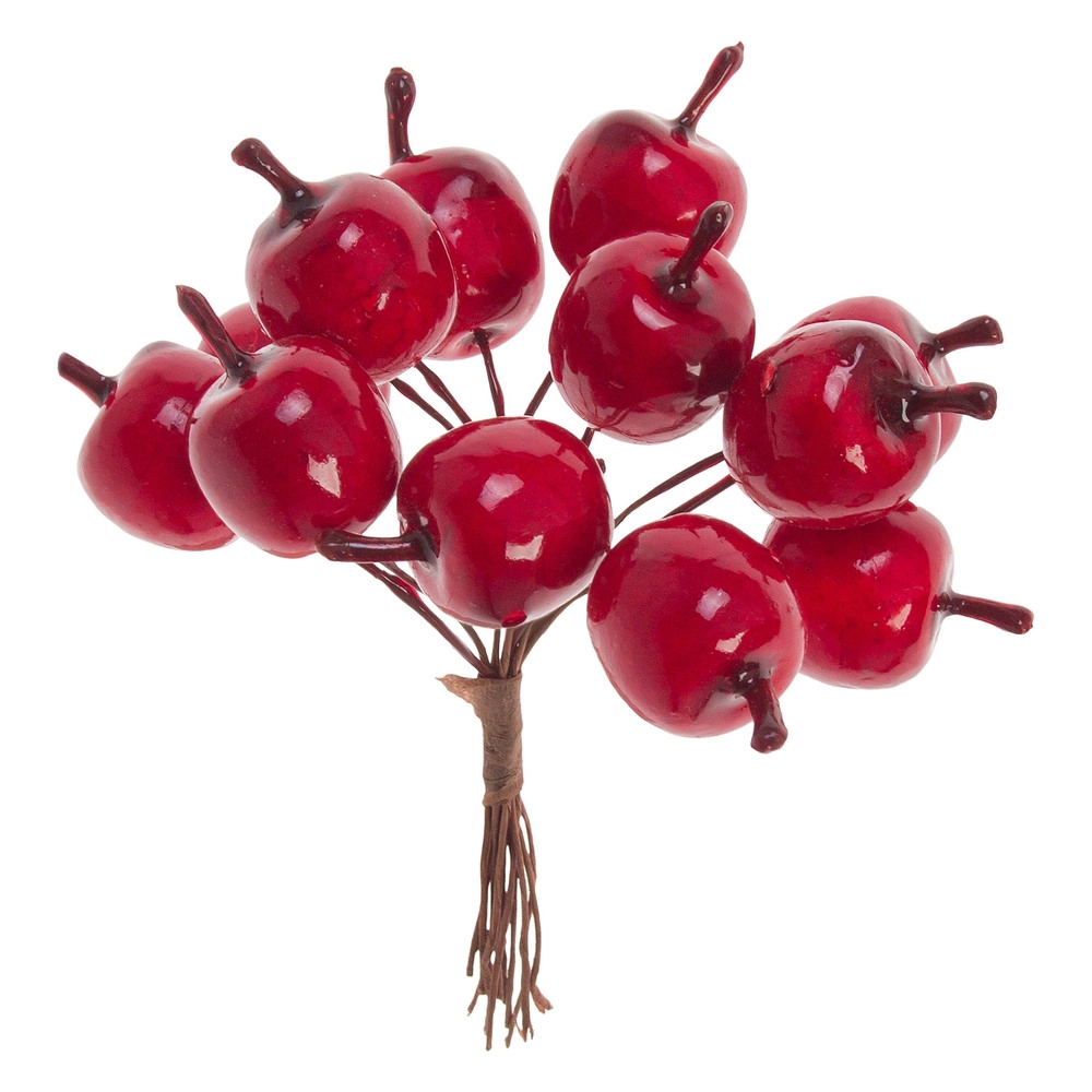 Яблоко искусственное на вставке (пластик), D1,5xH13 см, набор (12 шт) Красный