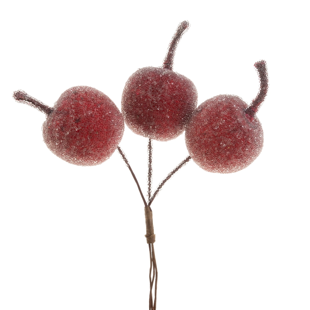 Яблоко искусственное засахаренное на вставке (пластик), D3,5xH11 см, набор (3 шт) Красный