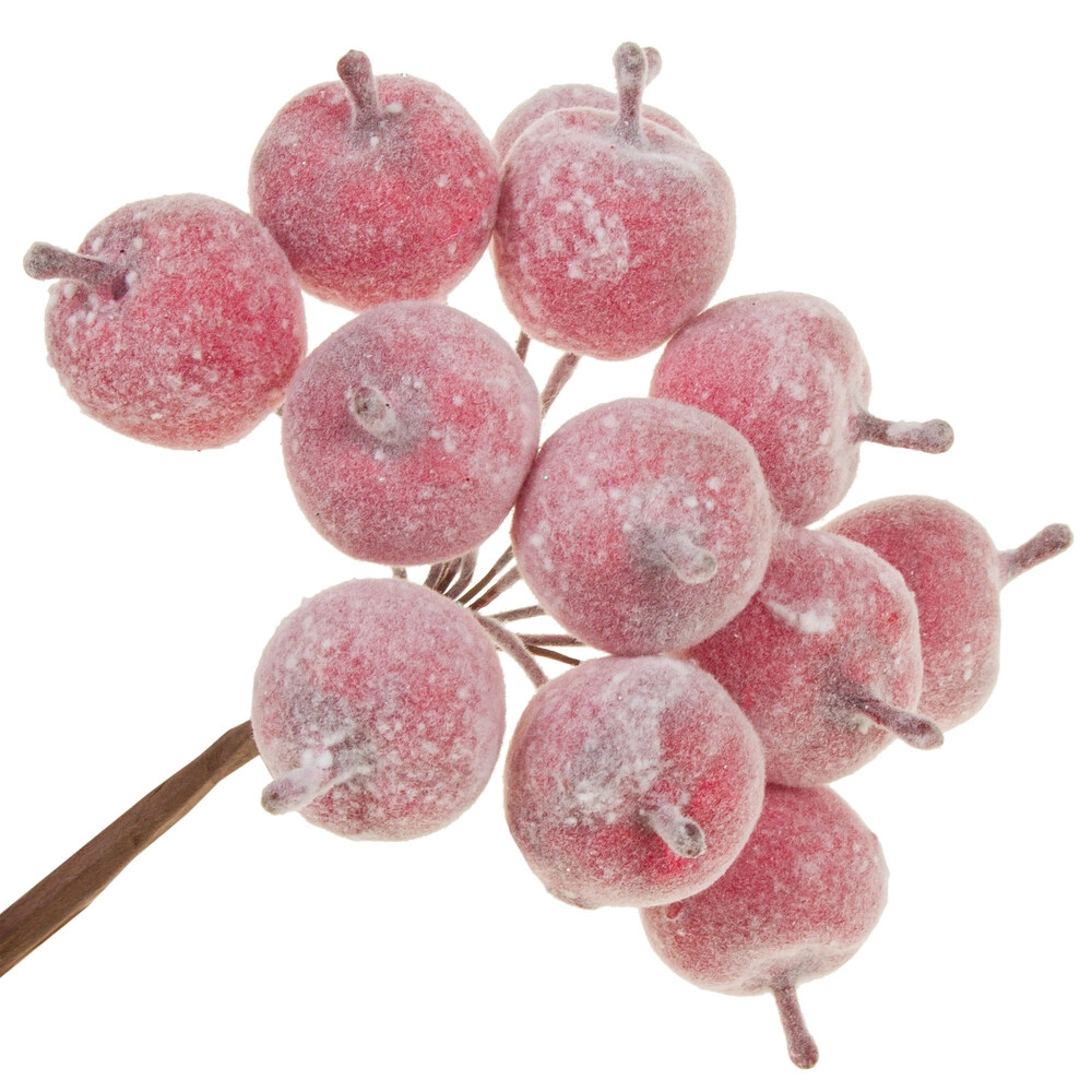 Яблоко искусственное заснеженное на вставке (пластик), D2xH8 см, набор (12 шт) Красный