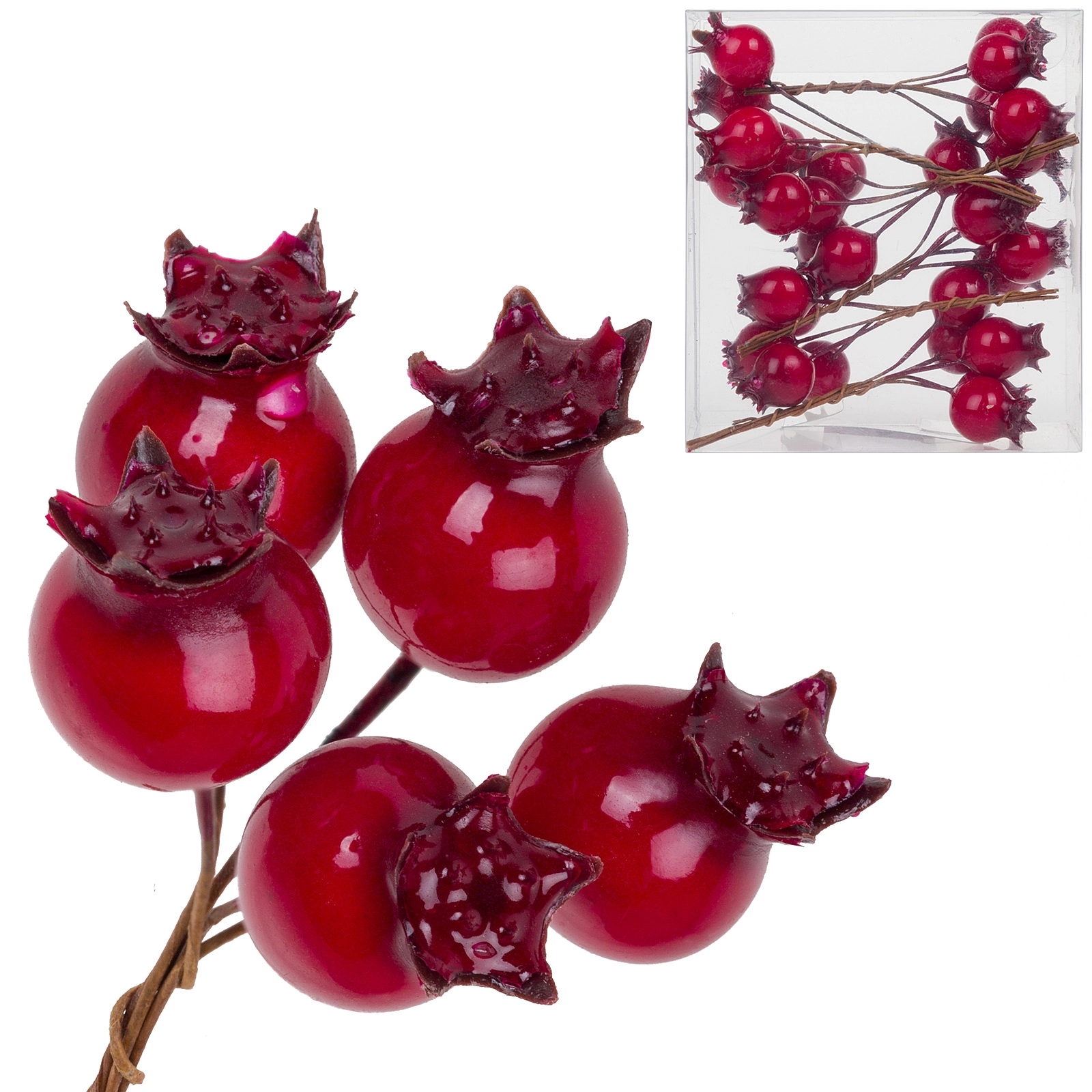 Ягода искусственная на вставке "Шиповник" (пластик), 8,5x4xH9,5 см, набор (30 шт) Красный