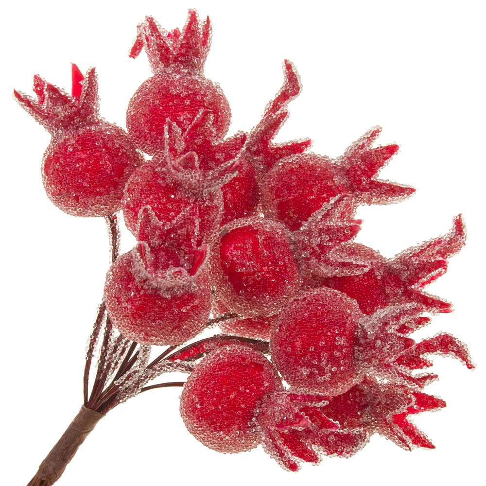 Ягода искусственная засахаренная на вставке "Шиповник" (пластик), D2xH11 см, набор (12 шт) Красный