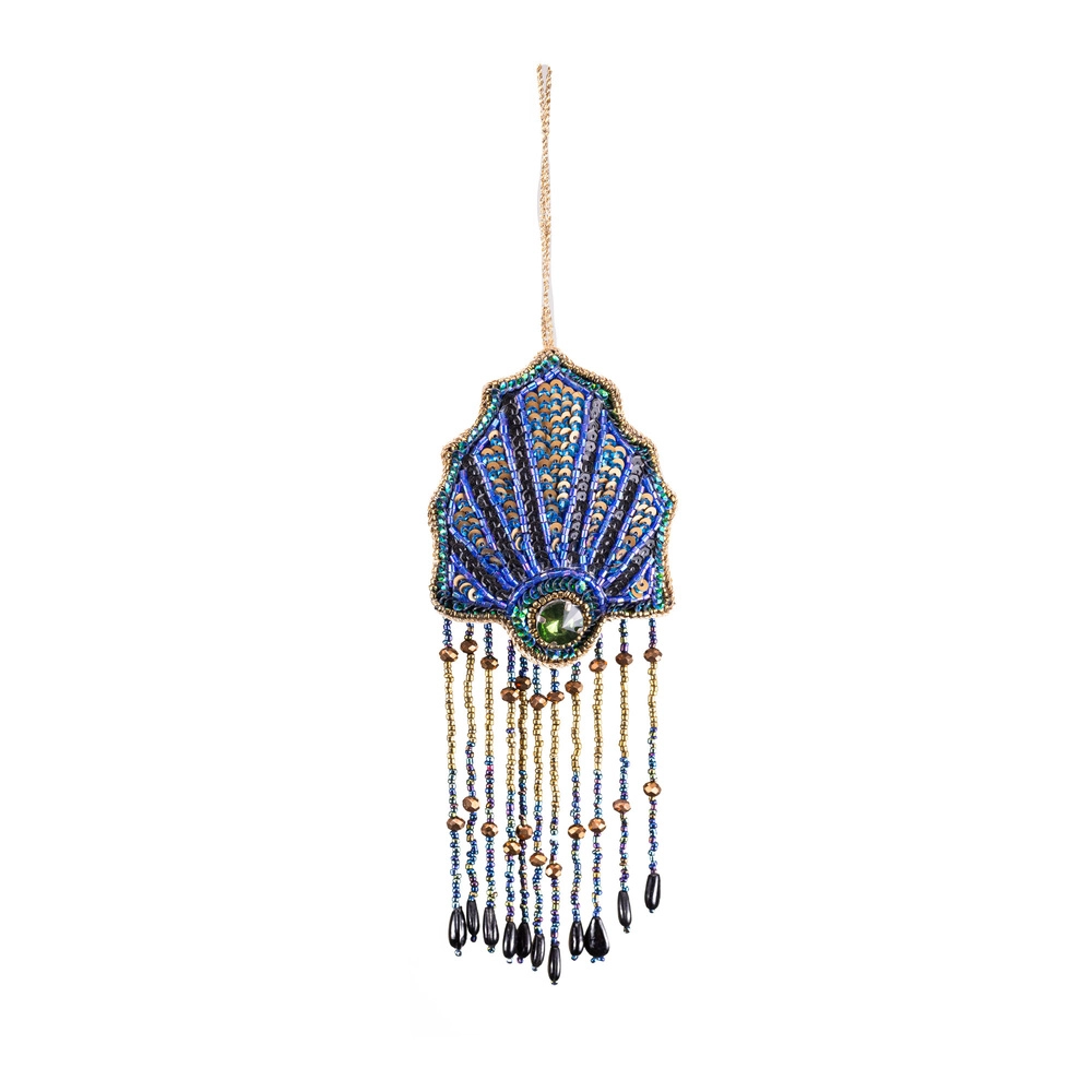 Елочная игрушка "Веер" (бархат, бисер) Синий