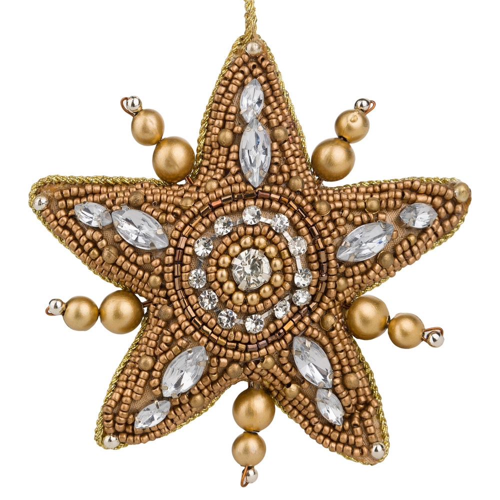 Елочная игрушка "Звезда" (бисер) Золотой