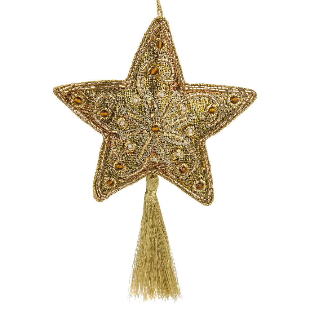 Елочная игрушка "Звезда" (парча, бисер) Оливковый