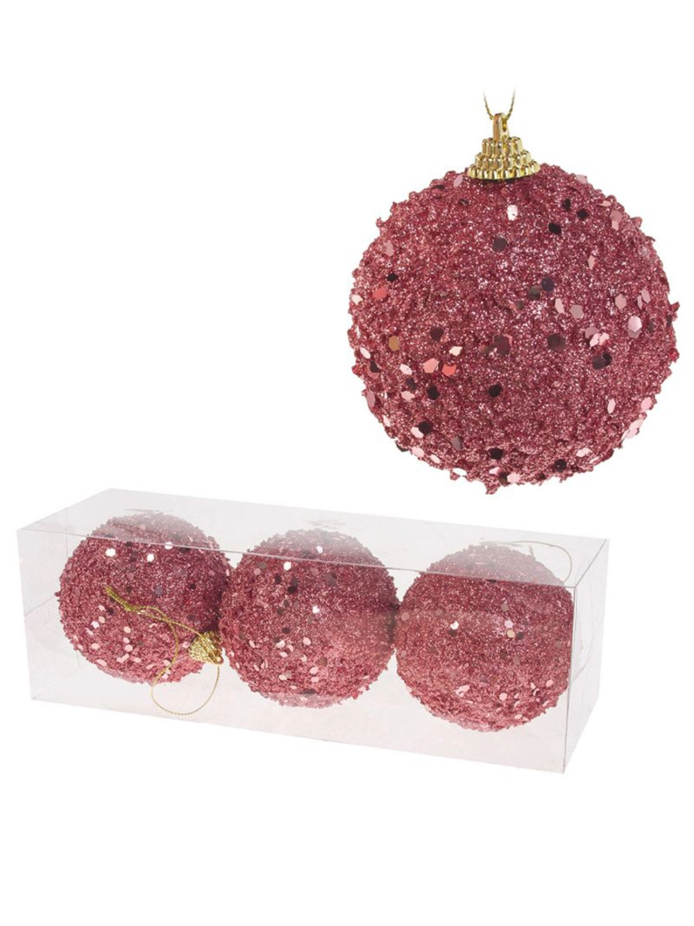 Елочная игрушка "Шар" (пена), D8 см, набор (3 шт) Розовый