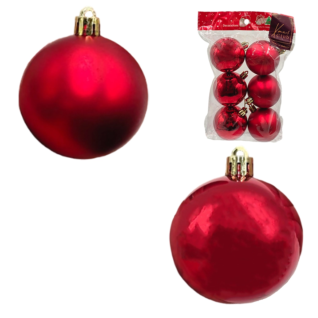 Елочная игрушка "Шар" (пластик), D8 см, набор (6 шт), в асс. Красный
