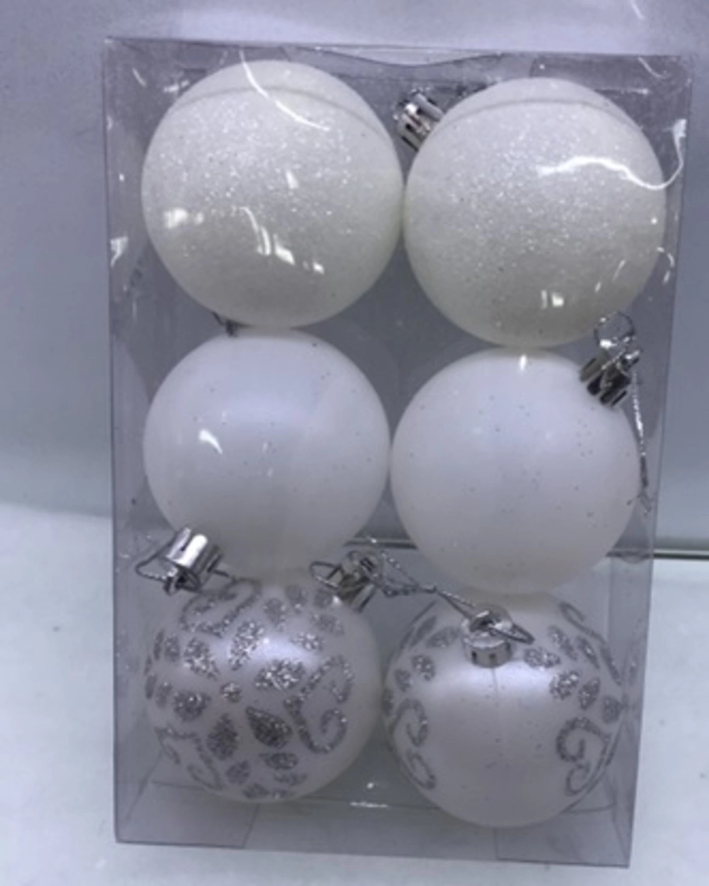 Елочная игрушка "Шар" (пластик), D6 см, набор (6 шт) Белый