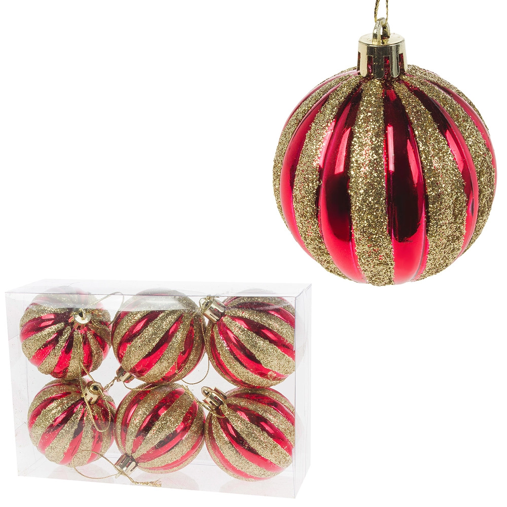 Елочная игрушка "Шар" (пластик), D6 см, набор (6 шт) Красный