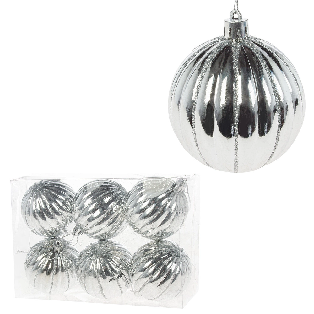 Елочная игрушка "Шар" (пластик), D7 см, набор (6 шт) Серебряный