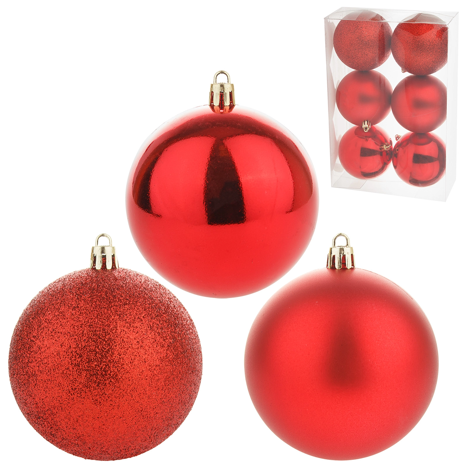 Елочная игрушка "Шар" (пластик), D8 см, набор (6 шт) Красный