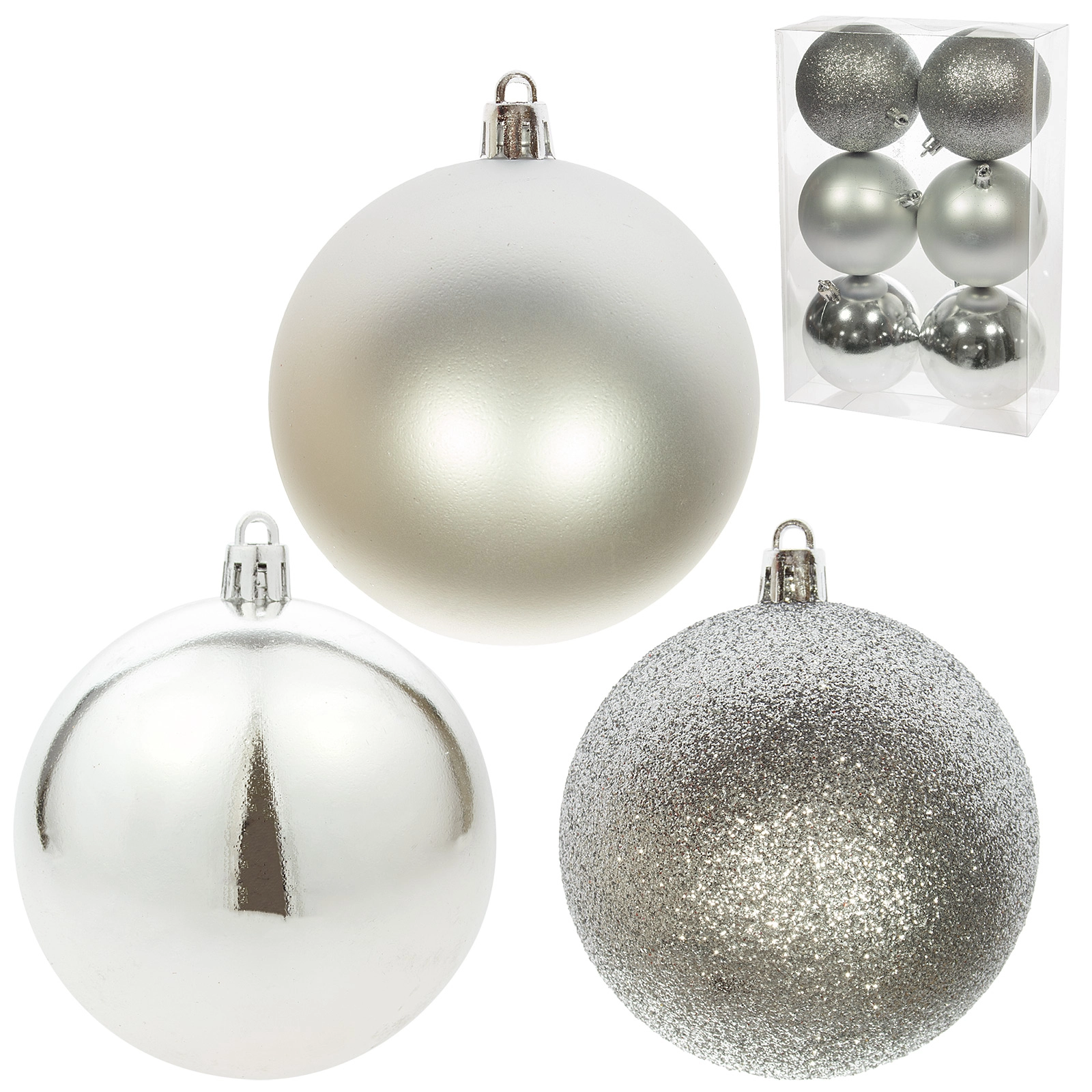 Елочная игрушка "Шар" (пластик), D8 см, набор (6 шт) Серебряный